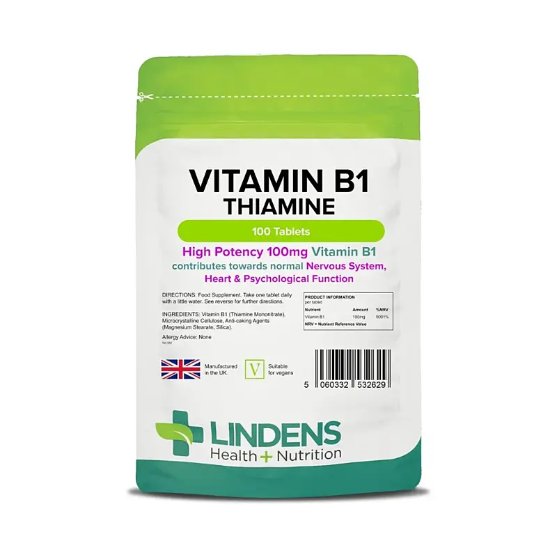 Tablety Lindens Vitamín B1 100 mg poskytují více než 9000 % RHP (referenční hodnoty příjmu) vitamínu B1, což znamená, že tento produkt je pohodlným způsobem, jak podpořit své zdraví a tělo.