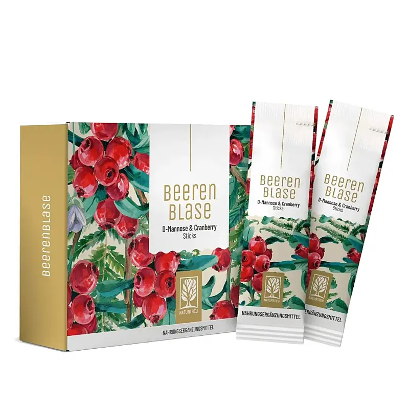 Beerenblase od Naturtreu je práškový komplex s obsahem D-manózy, brusinky, dýňových semínek a vybraných vitaminů. Produkt je balen v praktických jednorázových sáčcích, které umožňují snadnou přípravu nápoje doma i na cestách. Doplněk stravy. Vhodné i pro vegetariány a vegany.