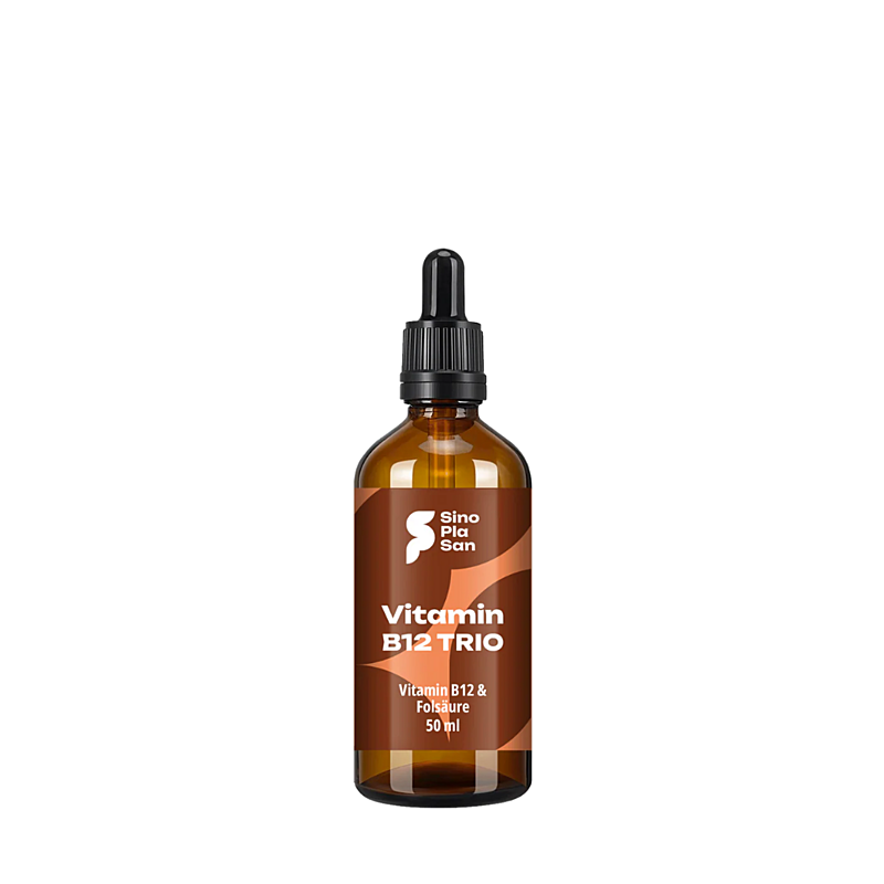 Výživový doplnok TRIO kvapky značky Sinoplasan obsahujú vitamín B12 ako metylkobalamín a adenosylkobalamín v pomere 1:1 v praktickej forme ako kvapky. Navyše sú obohatené o aktívnu alternatívu kyseliny listovej s lepšou vstrebateľnosťou pre organizmus ako Quatrefolic® - glukozamínovú soľ kyseliny (6S)-5-metyltetrahydrolistovej, ktorá posilňuje celkový účinok. Vitamín B12 je dôležitý predovšetkým pre vegánov a vegetariánov, nakoľko ho vegánska a vegetariánska strava neobsahuje. Kvapky sú bez chuti a bez aróm.